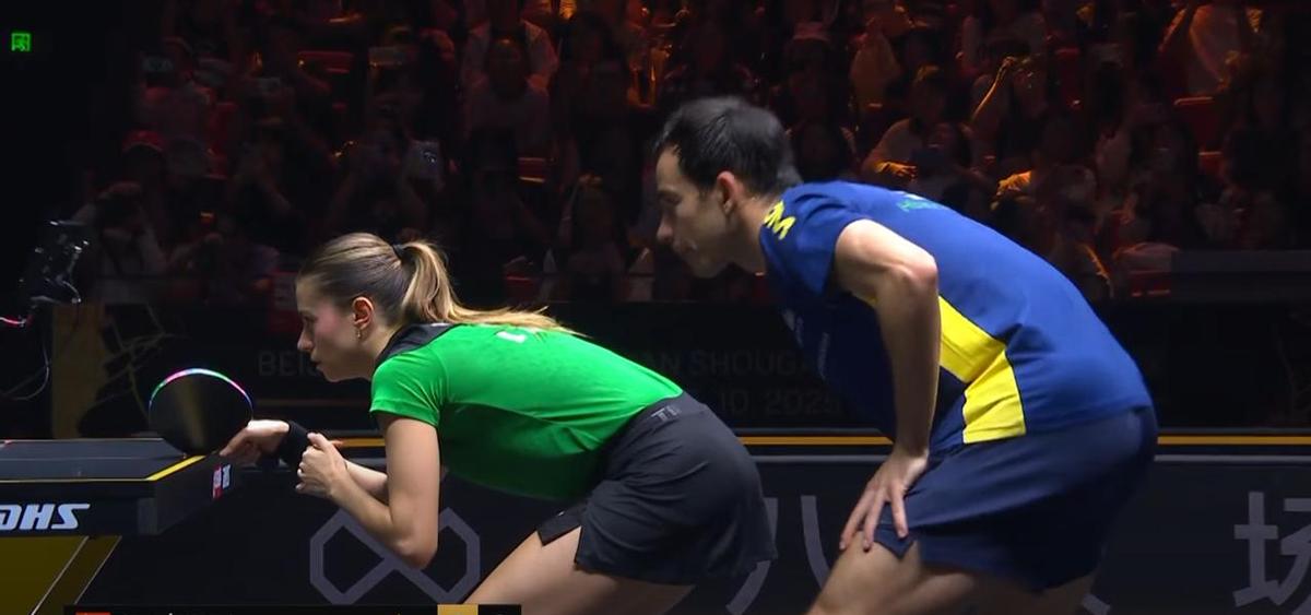 那球一拉,雨果蹲地上了。 不是他不行,是莎莎太懂他。 巴西队合练9次,莎头关起门练了28天。 球速126公里,转速112转,可人家早把你的套路刻进DNA了。 雨果捂脸那8秒,全场静得能听见心跳。 他不是输在力量,是输在预判。 你使出浑身解数,对方连你呼吸的节奏都算准了。 混双这活儿,不是谁力气大谁赢。 是默契,是细节,是凌晨四点的对练,是对方一个眼神你都知道他要往哪打。 19分钟,13分,3-0。 没废话,没反转,就一招:你出招,我拆招。 雨果明天还得打王楚钦。 这次,没人替他擦眼泪了。