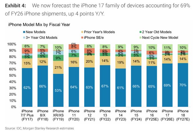 摩根士丹利在其最新报告中描绘了一幅对苹果公司更为乐观的图景。尽管当前iPhone17周期的开局强于预期,但一个由存量设备升级和重大产品创新驱动的、可能更强大的iPhone18周期已在酝酿之中。