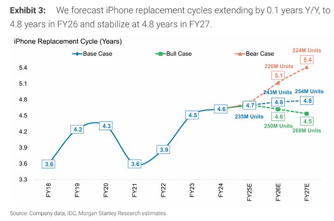 尽管iPhone17表现不俗,但摩根士丹利将目光更多地投向了iPhone18所在的新周期。