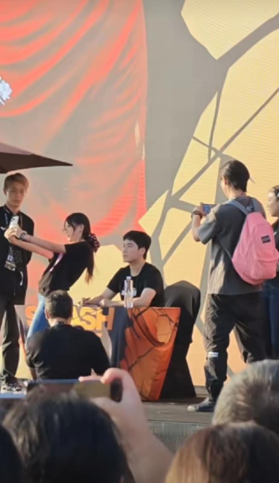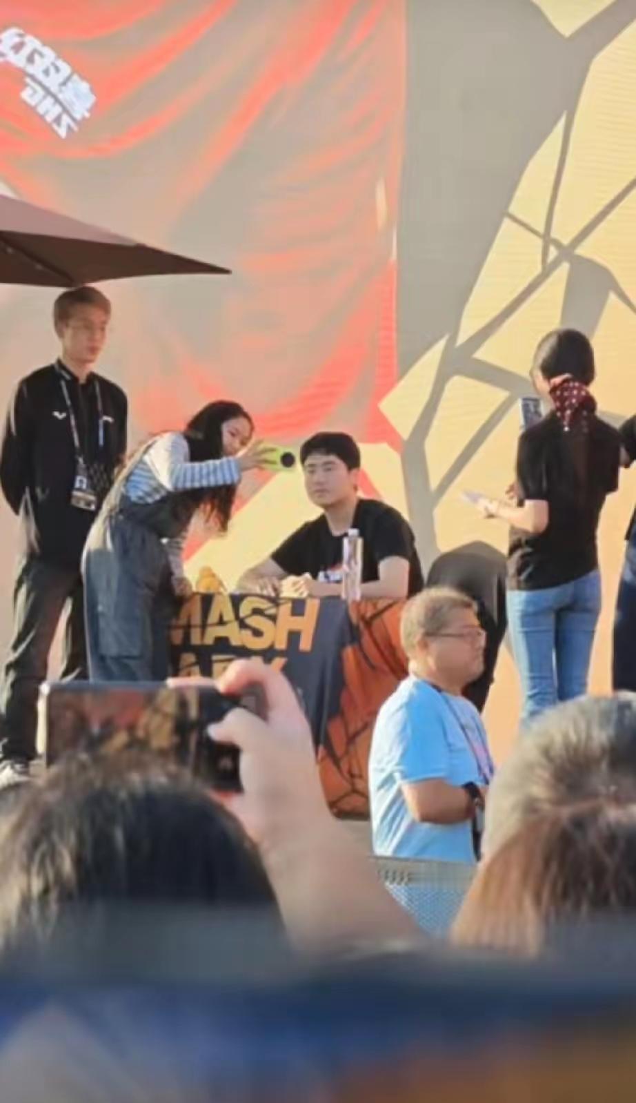10月3日大胖现身球迷见面会! 在现场背景音乐《吉林的风》响起的时候,今天下午大胖现身首钢园梁靖崑球迷见面会。 现场拥满了大胖的粉丝,有男粉有女粉,他们在大胖签完名之后,纷纷拿起手机和小胖合影,留下这个珍贵而美好的时刻。 此时此刻的大胖,端坐于台上,目视前方,沐浴秋阳,在《吉林的风》吹拂下,像一位儒雅的书生那般尽享粉丝拥戴的快乐。 秋阳正好,祝愿大胖双节快乐!