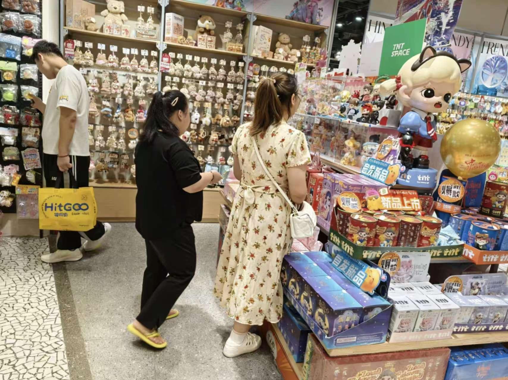 隔壁的文创产品店,热门影视IP周边、国潮风饰品等商品琳琅满目。众多文创产品中,一种由金属或亚克力制成、印有各类IP图案的圆形徽章成为近期爆款,年轻群体亲昵地称其为“吧唧”。“我是哈利波特的资深粉丝,听说店里上了联名吧唧盲袋,特意拉着朋友来打卡!”正在拆盲袋的市民陈女士满是期待。店员介绍,带有情怀属性的影视IP文创销量激增,年轻消费者对“有记忆点、可收藏”的文创商品热情高涨。