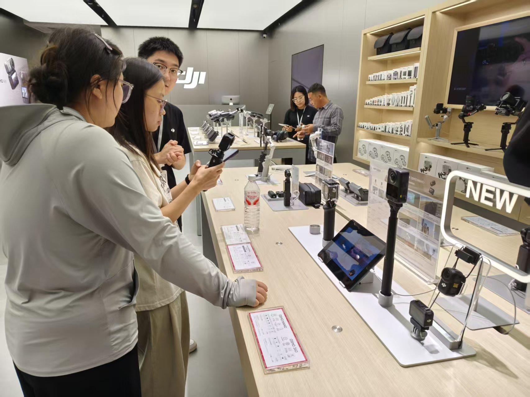 随着户外消费热潮兴起,无人机、运动相机等智能装备也成为年轻群体新宠。“早就想入手一台运动相机,假期打算去露营,用它记录风景再合适不过了。”正在体验的市民孙女士说道。店员介绍,假期期间,无人机和运动相机的销量明显增加,年轻消费者对智能装备的热情,推动了户外消费业态的快速发展。