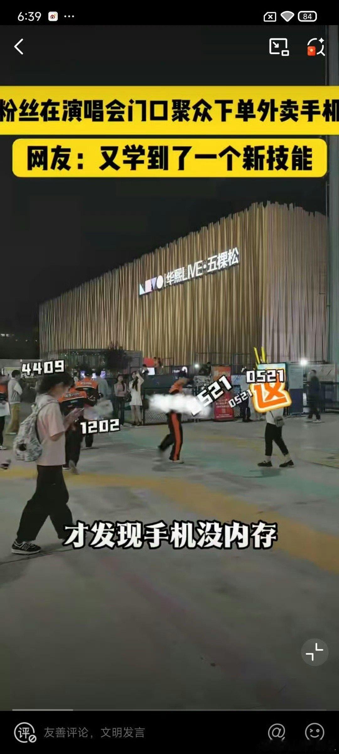 粉丝们在演唱会检票口直接下单手机,外卖小哥迅速送达,现场交流型号选择,满足拍照需求,展现了即时消费的新潮流。
