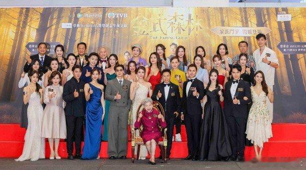 無綫重磅豪門爭鬥劇《金式森林》將於10月13日首播,今日主演的郭晉安、陳曉華和羅子溢聯同監製林志華率領劇中超過20名演員現身東港城為《金》劇宣傳造勢,包括何廣沛、何依婷、陳俊霆、陳星妤、羅天宇、郭柏妍、莊子璇及龔慈恩等行Catwalk華麗登場,女藝人齊齊穿晚裝踏紅地氈,當中以陳星妤低胸晒腰最性感。郭晉安和陳曉華台上重演跪地求婚一幕。而年屆90歲的羅蘭精神奕奕出席,不過說話時就擺烏龍講錯新劇的播放時間,又把《金式森林》講錯「黑色森林」。活動尾聲,大會送上生日蛋糕為羅天宇補祝生日,同時為郭柏妍慶祝生日。全場合唱生日歌,引來數百粉絲圍觀,場面墟冚。