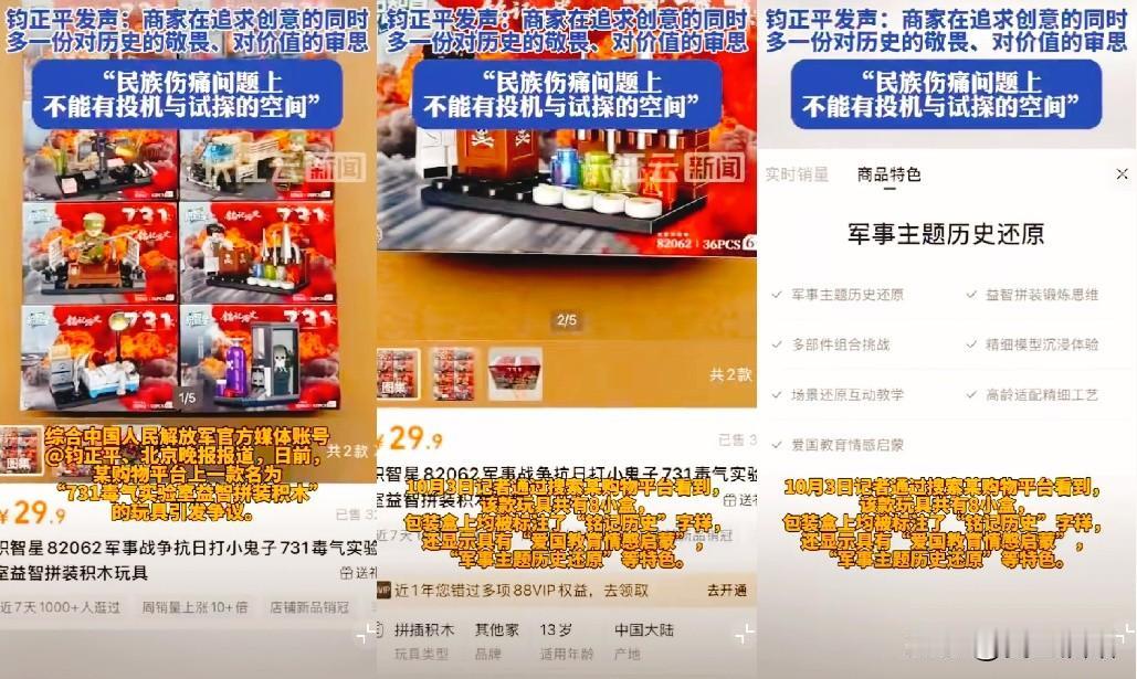 在军方评论号“钧正平”定调后,731毒气实验室积木玩具现已全部下架。离大谱!竟有
