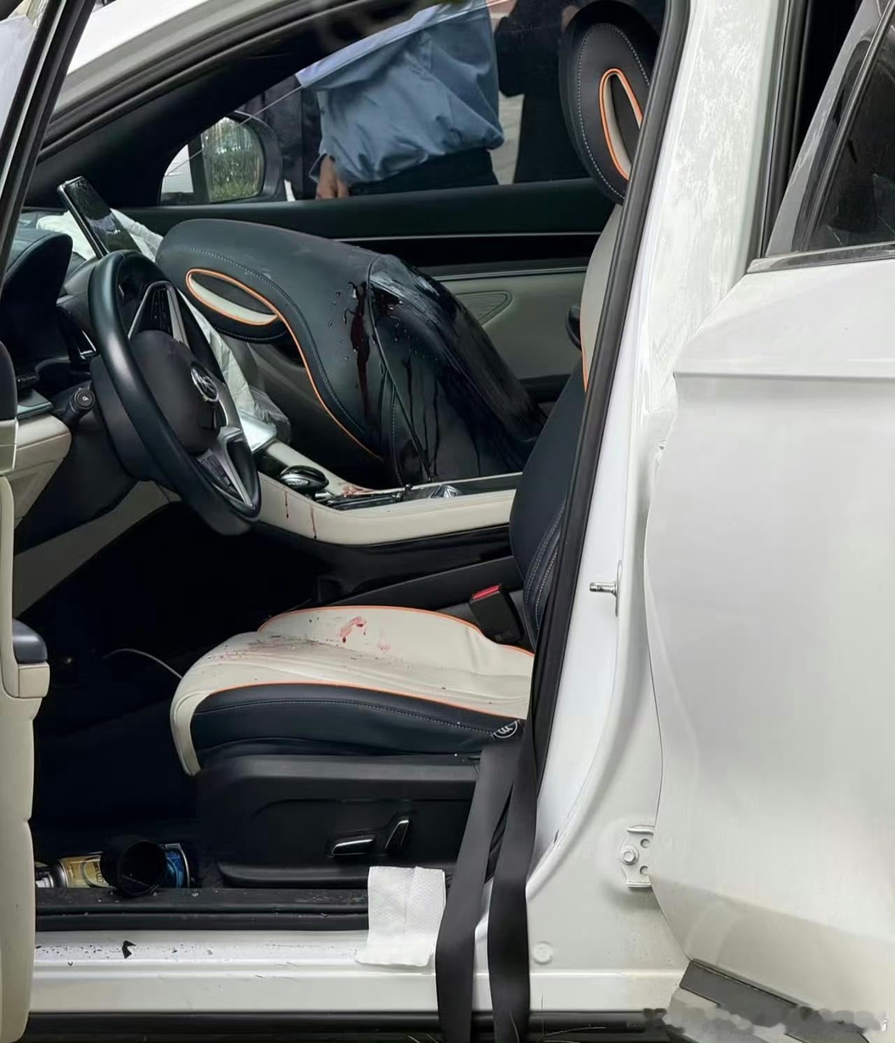 另一个视角! 比亚迪车内主驾驶位置有血迹?