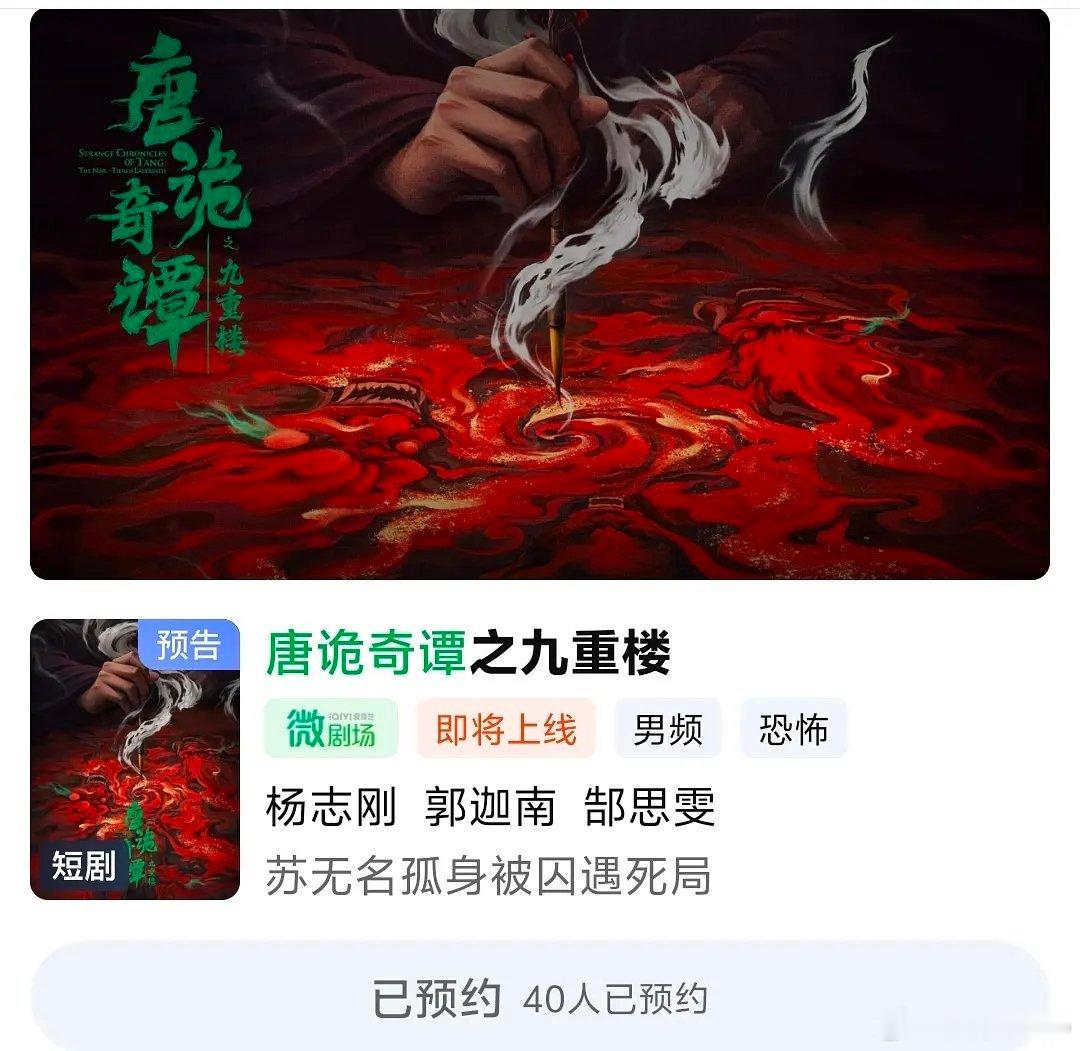 《唐诡奇谭之九重楼》由杨志刚和郭迦南主演,10月3号在横店开机