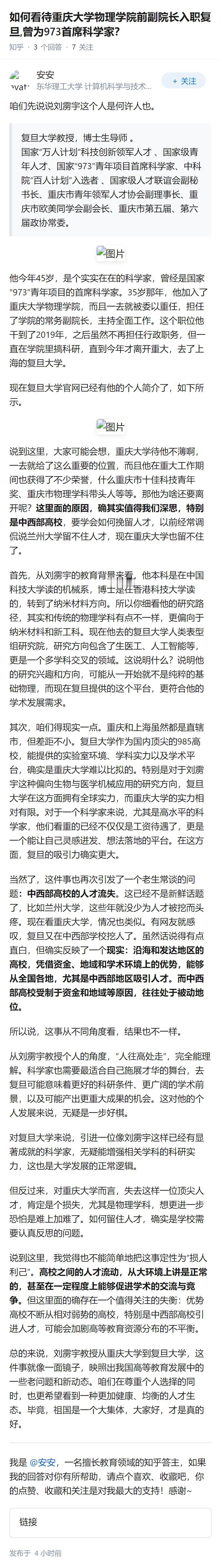 如何看待重庆大学物理学院前副院长入职复旦,曾为973首席科学家?