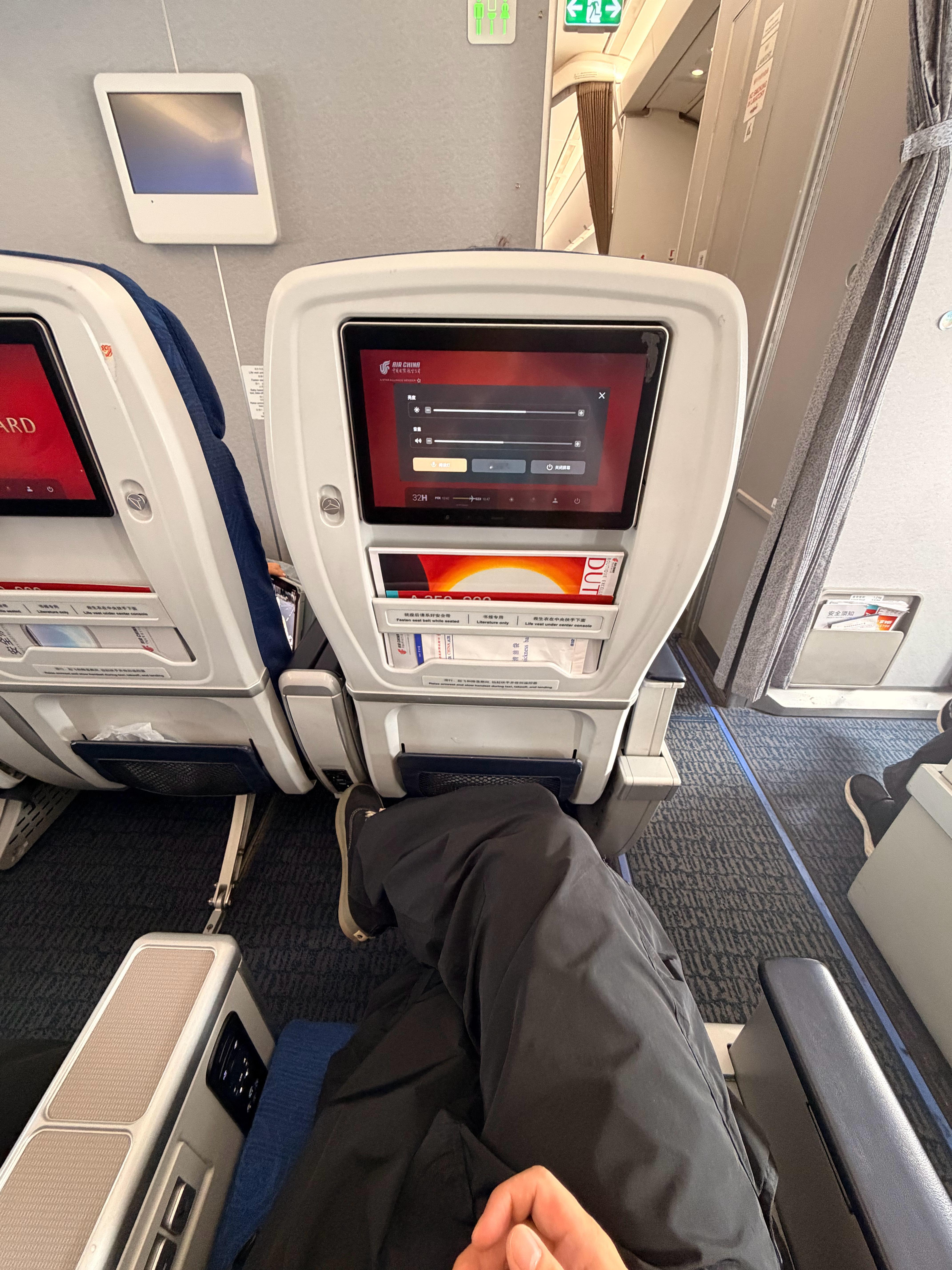 终于坐上一次心心念的A350了,现在国航所有飞机里最喜欢的飞机,坐的舒服还有wifi,上飞机往后走了半天发现还给升了超级经济舱,可以说美滴很了