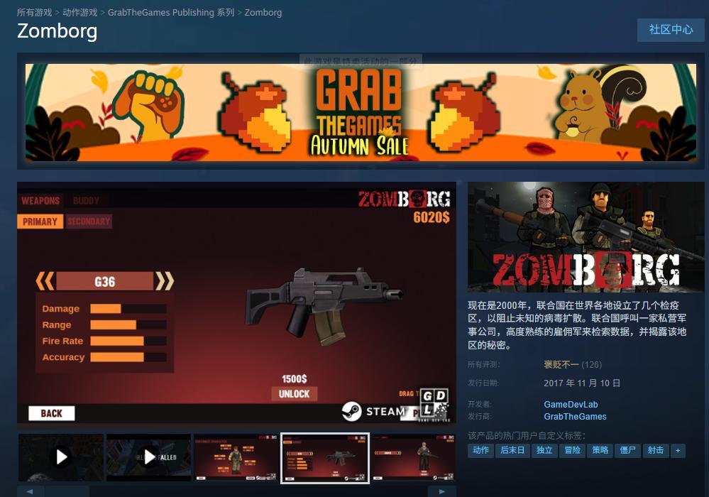末世丧尸策略射击游戏《Zomborg》正在Steam免费发放,国区原价22元。活动截止到10月7日凌晨1点,支持中文页面和中文配音。