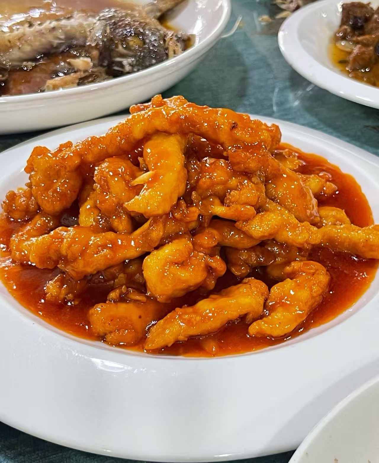 3️⃣.糖醋里脊,猪肉切条,直接裹粉炸,再搭配酸甜酱,吃起来酱汁浓郁。