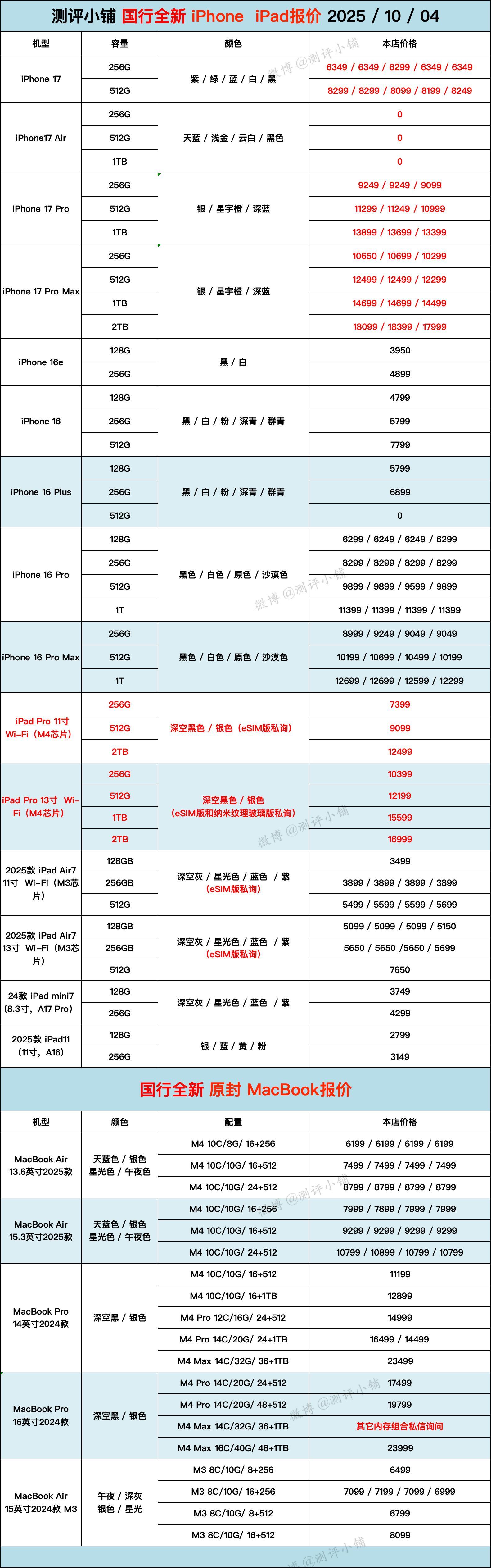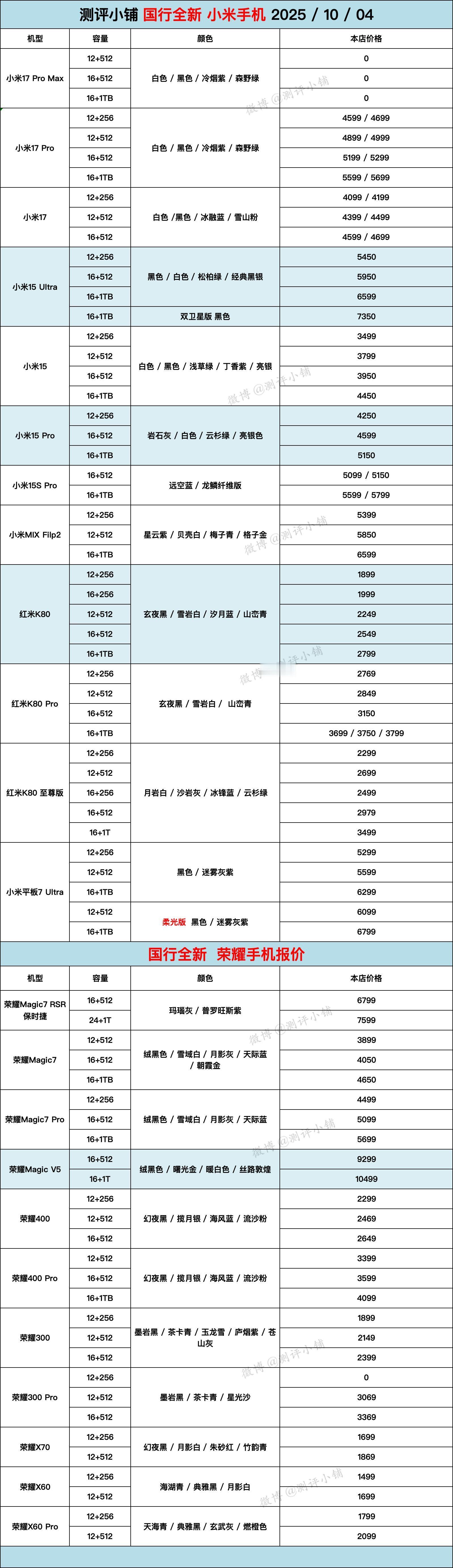 10-04全新机报价,iPhone17系列,华为Mate XTS,华为Mate70 Pro,荣耀Magic V5,三星S25 Ultra,三星Flip7,vivo X200系列,一加系列等更新