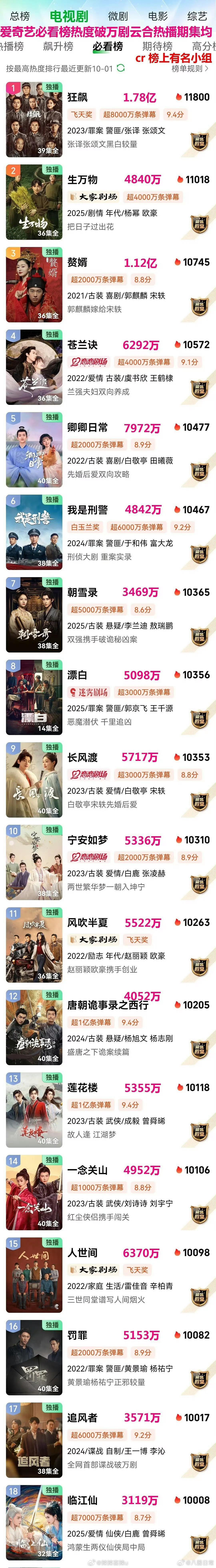 优酷、爱奇艺必看榜热度破万剧云合热播期集均
