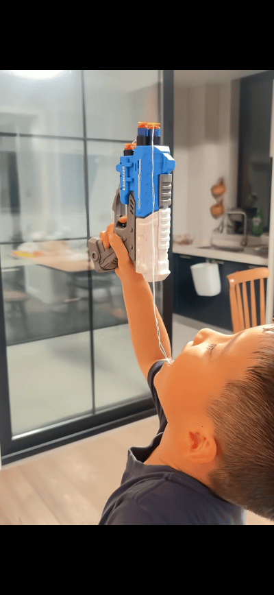 这个操作太厉害了!小男孩用绳子把自己松动的牙绑在玩具枪上,然后自己摁下开关,松动