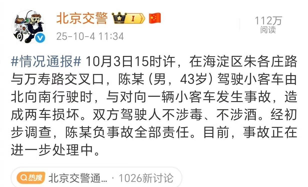 这个时间点发个荣耀的广子,也不知道对品牌方是好是坏。另外北京交警已发通告,认定陈震负全责,并未提及比亚迪车人员的伤情,应该是不严重。等着赔钱吧。