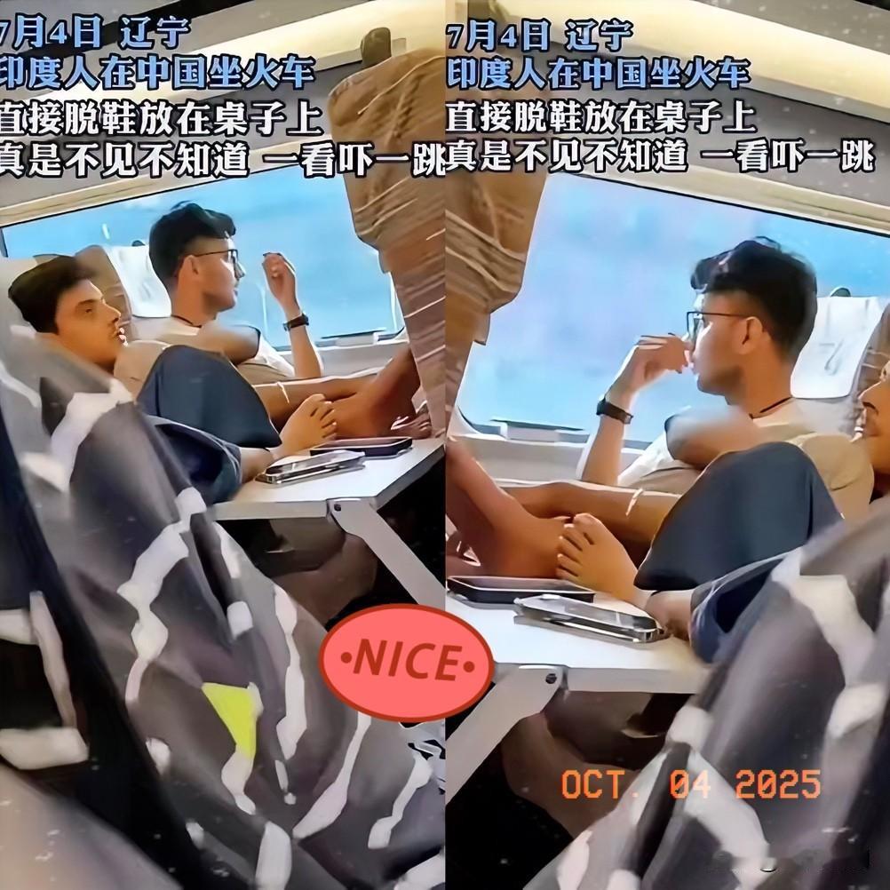 刷到印度乘客在高铁上的操作, 真让人火大。脱鞋把脚翘上桌板,大声喧哗咖喱味飘老远,甚至有网红直接要求别人换座还不道谢,全程旁若无人。 最离谱的是乘务员明明看见了, 却睁一只眼闭一只眼,换成国人早提醒了, 这双标看得人憋屈。总说要包容外宾,可包容得有底线,规则面前该一视同仁才对。 别拿“文化不同”当借口, 尊重公共秩序不分国籍。 真不是排外,是反感这种“特殊对待”, 把客气当特权才让人膈应。 你们在公共场合碰到这种违规的, 会直接提醒还是找工作人员? 评论区说说!