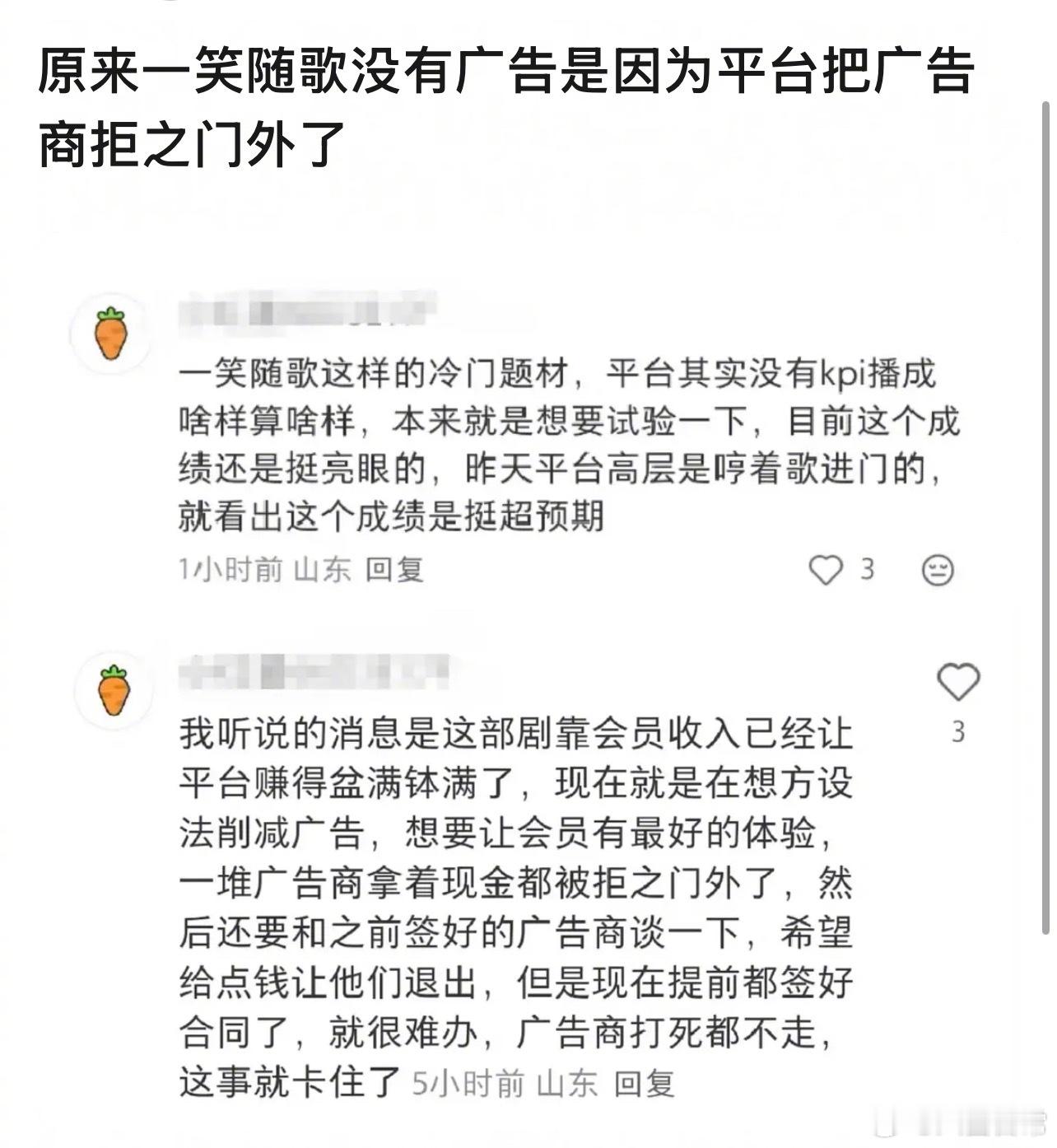 粉丝说《一笑随歌》没有广告是因为平台把广告商拒之门外了