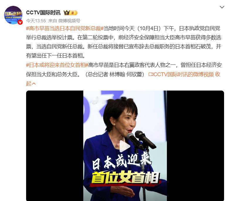 高市早苗当选日本自民党新总裁,热点观点