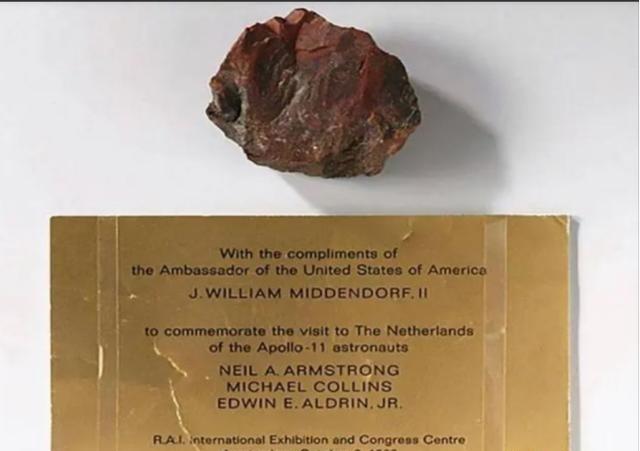 1969年,美国大使在访问荷兰的时候,豪爽地送给荷兰首相高达500克的稀有“月岩”石。但众人没有想到的是,这块岩石竟然有猫腻! 荷兰也在这份名单里,还挺靠前。1970年,美国驻荷兰大使在一场公开活动中,将一块据称是“阿波罗11号任务所采集的月岩”,作为礼物交给了荷兰首相。 这块石头重达半公斤,上面还放着一块小小的说明牌,写着这是从月球带回来的真货。荷兰政府自然是高兴得不得了。 把这块宝贝精心装裱,送进了阿姆斯特丹国家博物馆,从此成为了展柜里的“镇馆之宝”。这块石头在馆里一放就是几十年。 参观的人络绎不绝,很多人都是冲着这块“月球来的石头”去的。工作人员对外也一直是这么介绍的,谁也没想过要去验证一下它的成分。 直到2006年,博物馆来了一位新馆长,他对这块石头的来源产生了点小疑问。不是说不相信美国送的东西,而是觉得这块石头的外形看起来实在不像月球岩石。 于是他请了一位地质专家来检测一下,结果出来后所有人都愣住了:这块石头根本不是来自月球,而是地球上常见的一种化石木。 这个结果让荷兰方面有些难堪,毕竟这块“国礼”已经展示了几十年,甚至还被当作国家荣誉对外宣传过。事情一传开,媒体立刻跟进报道,连带着把当年的赠送过程也翻了个底朝天。 可惜的是,没有人能说清楚这块石头到底是怎么被误当成月岩的。有一种说法是,当年美国使馆本身就拿错了样本,把一个象征性的纪念品当成了真正的月岩送出去。 还有一种猜测是,这块石头可能根本就不是通过官方渠道赠送的,而是某位外交人员私下送出的“象征性礼物”,但被误解成了真品。 不管是哪种可能,事实已经摆在眼前。这块所谓的“月岩”,其实是一块早在地球上存在了几百万年的木头化石,跟月球一点关系都没有。 更讽刺的是,荷兰国家博物馆在得知真相后,并没有把这块石头下架,反而继续保留展示,只不过换了个标签:从“月球岩石”变成了“外交误会的见证物”。 这块石头也因为这个乌龙,意外成为了全世界最出名的假月岩。这么一块普通的石头,没做任何伪装,没有科技造假,也没有复杂手段。 仅仅是因为一个小小的标签,它就能在博物馆里风光几十年。这事儿其实挺值得琢磨的。它说明,在那个年代,人们对太空探索的狂热已经到了不加质疑的地步。 美国登月的影响力不仅限于科技层面,更在于一种文化冲击。只要说是“从月球来的”,大家就默认它是真货,哪怕看起来像一块烧焦的木头,也没人怀疑。 这事儿也不是荷兰独有。美国当年送出的月岩样本,确实有不少是经过官方渠道认证的真品,但也有一部分是象征性质的纪念物,外形和真品相似,但没有任何科研价值。 问题是,这两者有时候并没有明确区分。荷兰的这块石头可能就是在这种模糊地带里“被误解”成了真货,谁也没去深究,结果一摆就是几十年。 很多人听完这个故事都笑了,觉得是个外交乌龙。但也有人从中看出了更深层的问题,比如公共机构对展品真实性验证的松懈,又比如公众对于权威信息的盲目信任。 更重要的是,它提醒我们:即使是一块石头,也有可能被赋予不属于它的意义。