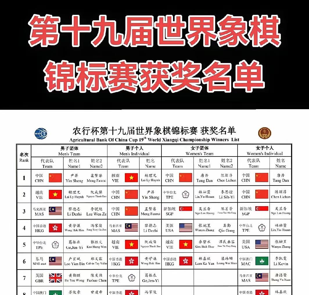 国旗都没有,我们要负责任。19届世界象棋国际赛事,男子组越南选手获得了冠军,男子团体第二名。 太尴尬了,都没准备国旗,只能光秃秃的站在冠军的领奖台上。 众所周知的原因,这些赌棋的家伙,没被彻底清算,如果被清算了,估计男子团体冠军也是越南的。 只是越南人没想到而已,搞得国旗都没带来!确实,我们得负上一定的责任!