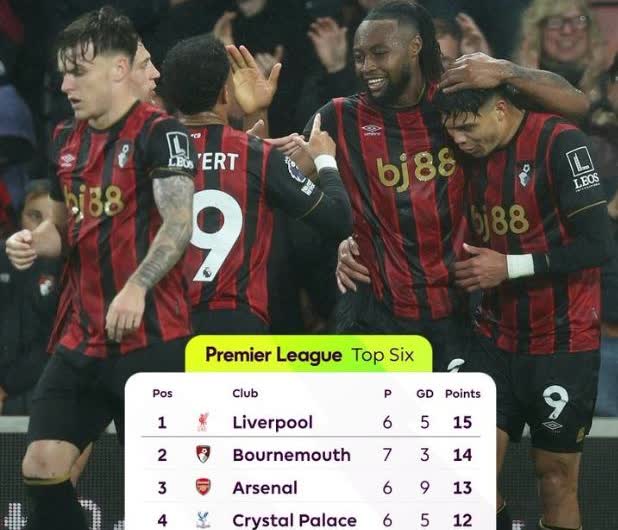 大黑马!英超第2易主! 阿森纳一觉醒来“天塌了”,自己的英超第2位置没了!今天凌晨先赛的英超第7轮比赛,伯恩茅斯主场3-1击败富勒姆,积分达到14分,暂时超过阿森纳,升至英超积分榜第2! 前7轮比赛,伯恩茅斯取得了4胜2平1负的优异战绩,这是他们在英超的队史最佳开局。首轮2-4惜败利物浦后,他们后面6轮比赛不败,包括客场1-0击败热刺,主场2-1击败布莱顿等强队。 能有这样的表现,伯恩茅斯十分让人意外,因为今年夏季伯恩茅斯几乎是拆队式卖人,怀森、科尔克兹、扎巴尼等防线3大主力全部被高价卖出,另外还把攻击手瓦塔拉卖了4000多万,总收入达2.38亿欧元,净赚超1亿欧。 球队从利物浦、切尔西、AC米兰、勒沃库森等球队搜刮了一些边缘球员,并高价引进后卫迪亚基特,没想到整体战斗力不减,打出了高光战绩。 能有这样的表现,主帅伊劳拉居功至伟,难怪他已经被很多豪门盯上,如果本赛季伯恩茅斯再度过一个出色的赛季,那么伊劳拉距离豪门帅位也就不远了。