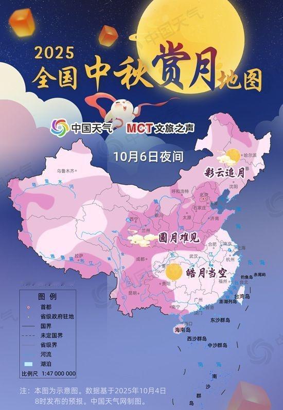 中秋遇国庆,还撞上年榜第三的超级月亮!今年是 “十五的月亮十六圆”,最圆时刻在 7 日 11 时 48 分,6-7 日夜观赏最佳。 📊全国赏月地图划重点:✅广东、浙江、江苏等十余地皓月当空,西湖、黄山超适合打卡;🌥️东北、内蒙等地可赏彩云追月;⚠️京津冀、云南等或遇雨无缘圆月。 外出赏月记得避高峰,选郊外山顶更出片!超级月亮中秋上线 双节赏月指南 今年中秋月十五的月亮十六圆 @中国天气网