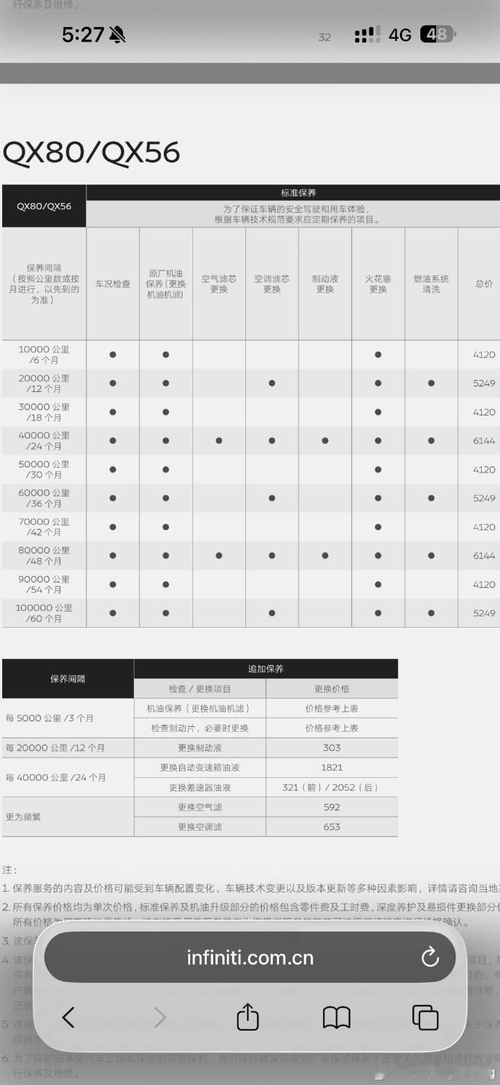 是不是英菲尼迪官网写错了,还是说另有原因,导致更换周期差16倍呢