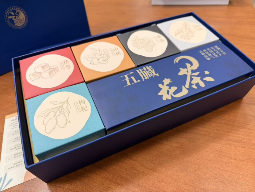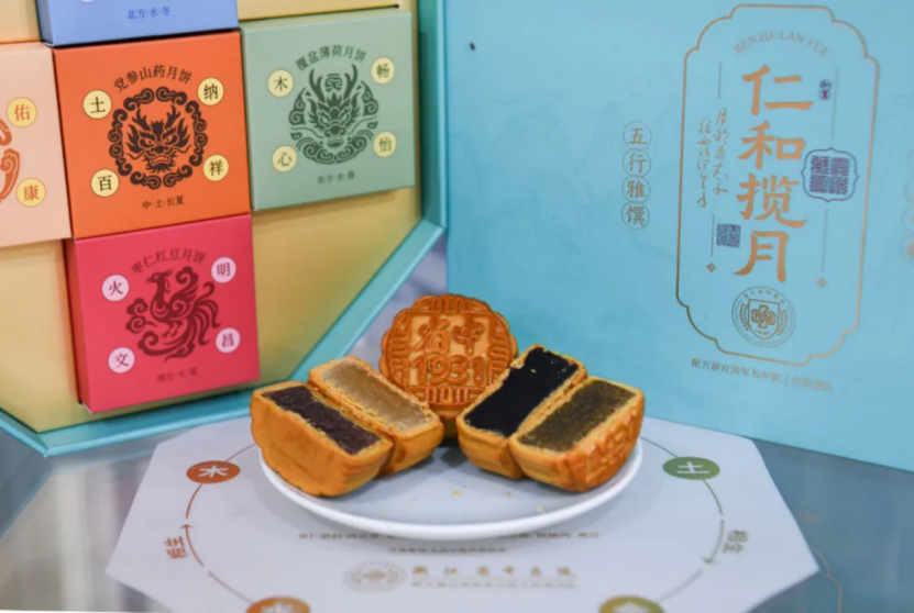 浙江省中医院将药膳与传统糕点相结合,推出“五行药膳月饼”,“蒂芙尼蓝”外包装加上为不同人群量身定制的养生馅料,主打低油低糖,既好看又好吃。