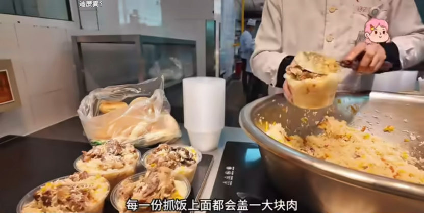 除了民族糕点,这里的新疆饭菜也很地道。而且,网友疯传手抓饭、拌米粉是医院食堂的招牌,大块牛肉精心熬制的酱料浓郁厚重。