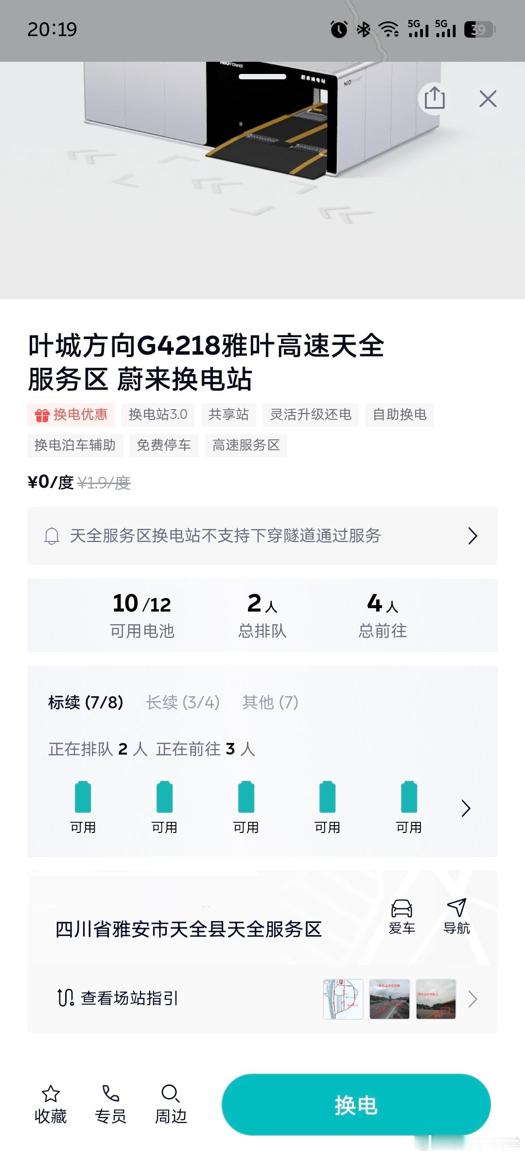 顺带看了一下这个地方有个换电站,所以我搜了一下这个换电站的排队情况,排队两人。