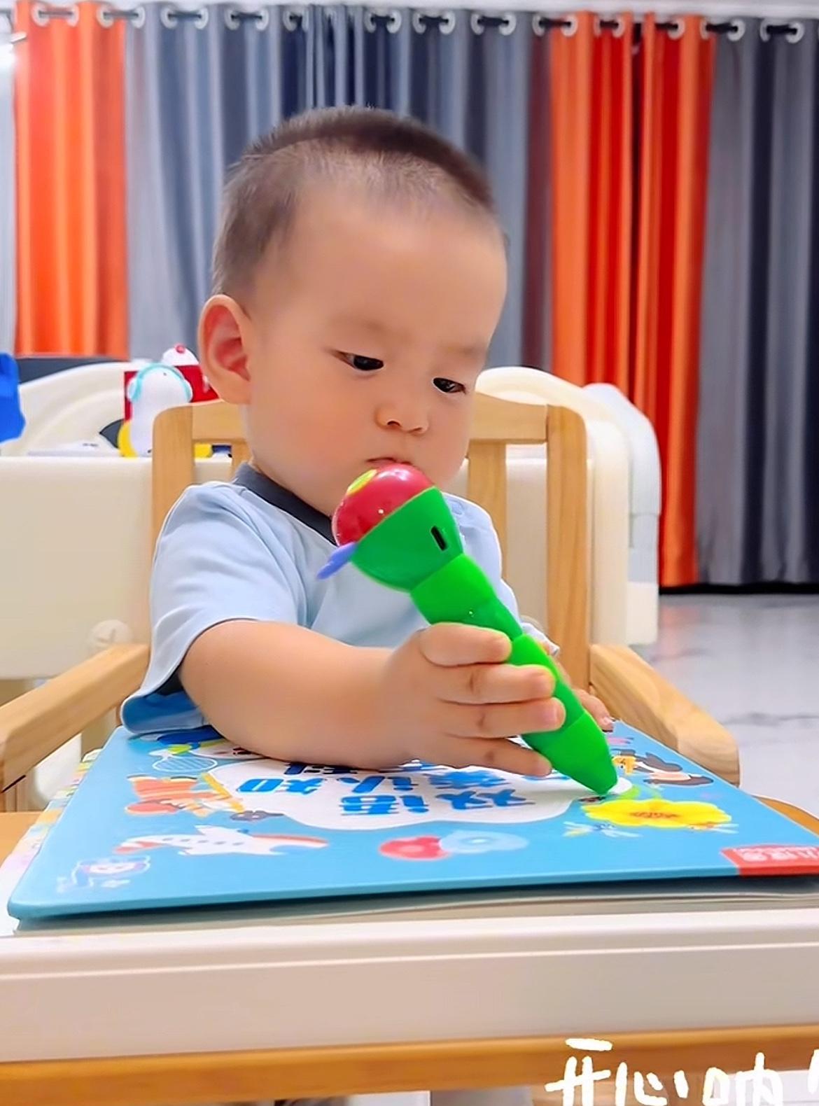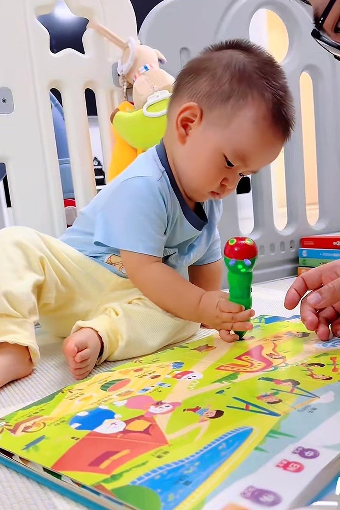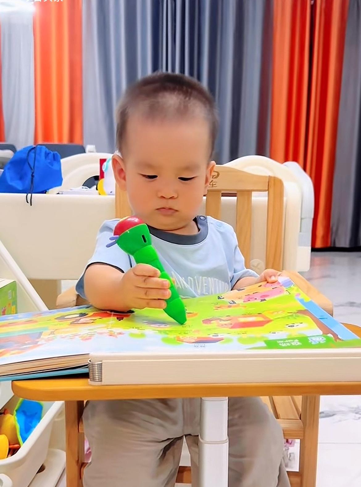 10月4日,王恒屹妈妈在社交平台发布视频,并留言道:发现一个爱阅读的小可爱~看他的眼睛发亮的模样,就知道,有些热爱,已经生根! 当然这个热爱就是热爱学习啦! 视频中的王逸轩在用点读笔学习呢,点完了一页,亲自翻下一页,这只是一个14个月的娃娃,看这利索劲,那里像刚过周岁不久的孩子!图三是视频刚开始的时候,轩仔笑了笑就开始学习了,不敢说轩仔能超过哥哥,但肯定长大是个爱学习的孩子,因为家庭学习氛围太浓了,一家人都在看书学习!