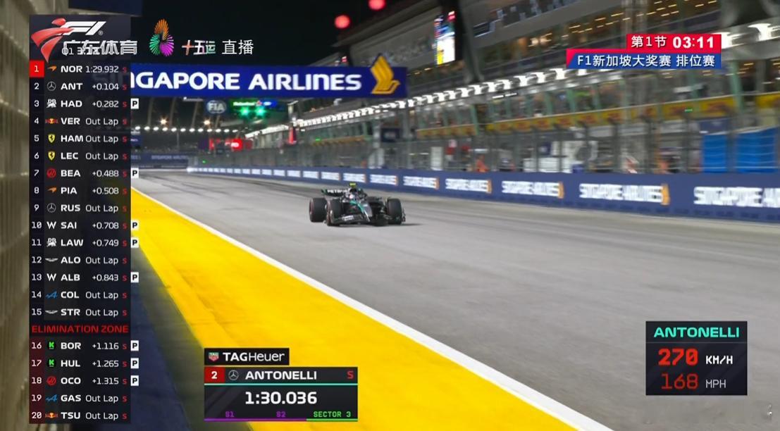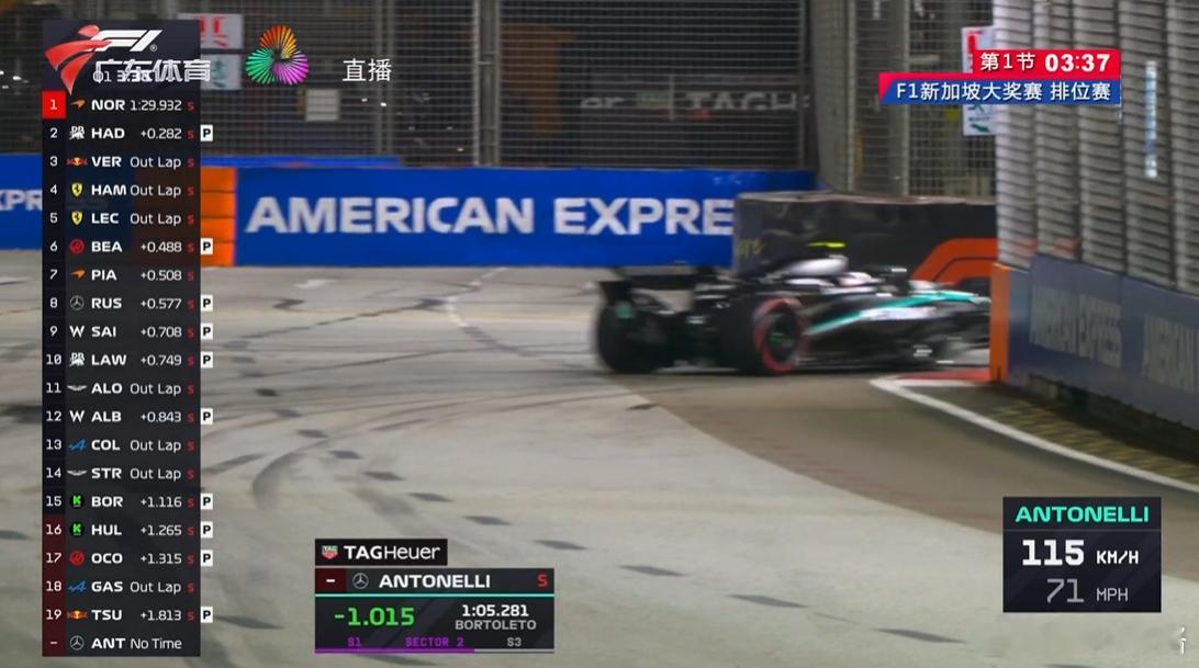 只要当镜头给TOTO就知道ANT的情况了,还好,马上给两段紫,Q1暂时上第二。算不错啦。