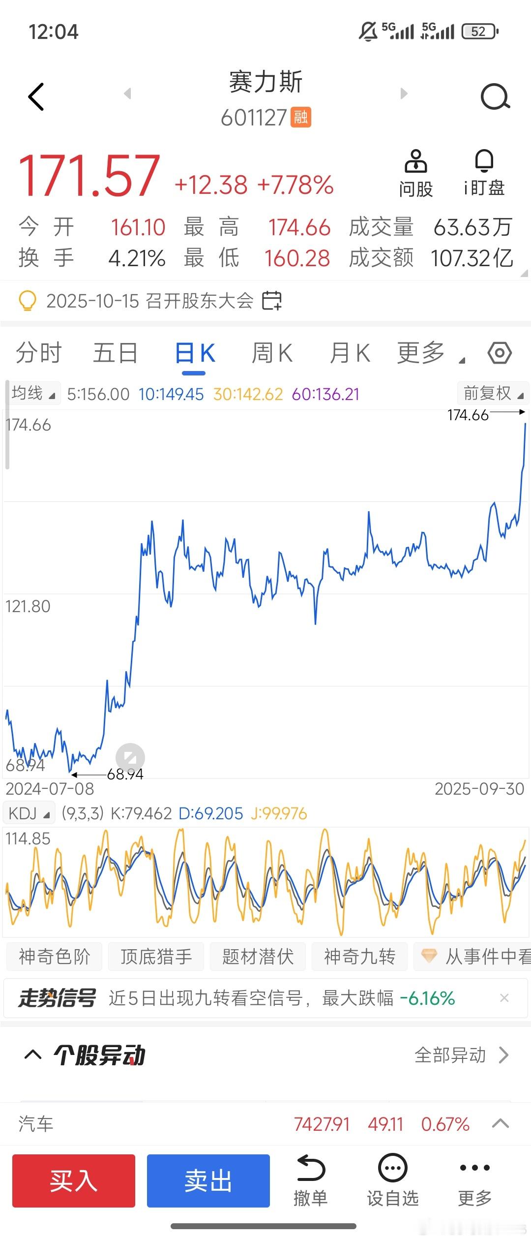 赛力斯大A从去年11月开始横盘,今年8月我熬不住卖了,看到国庆4天鸿蒙智行大定新增突破24600台,销量主力肯定还是问界M7+问界M8,还有刚上的尚界H5