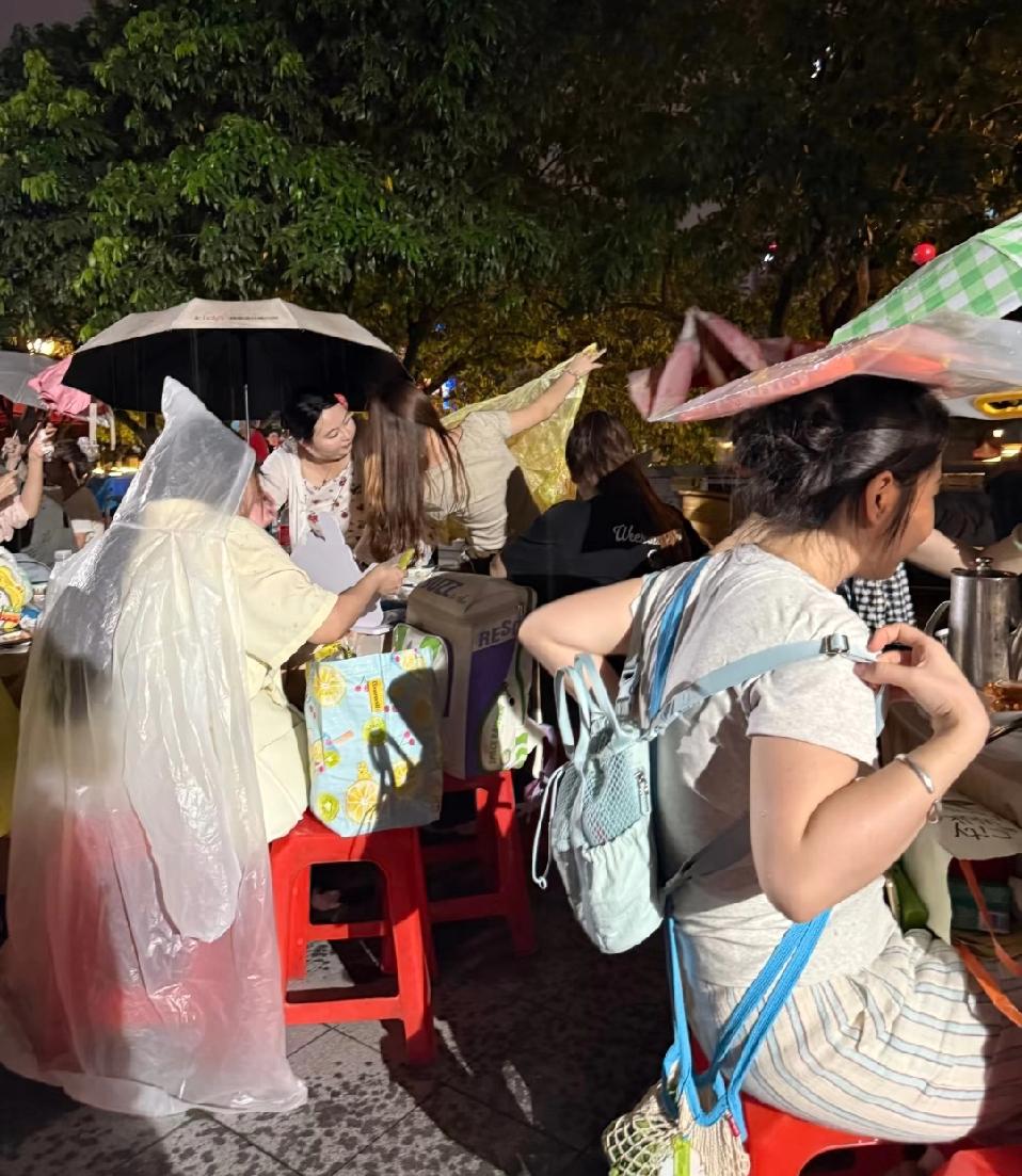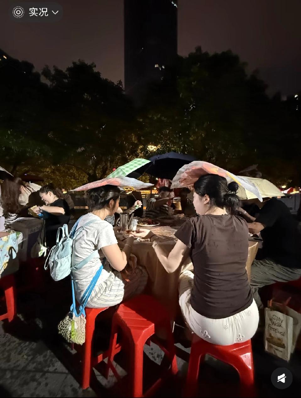 猎德的土豪吃饭也太惨了! 广州猎德的土豪们,居然在暴雨里露天干饭!雨衣、雨伞