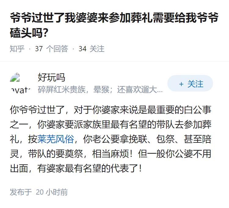 爷爷过世了我婆婆来参加葬礼需要给我爷爷磕头吗?