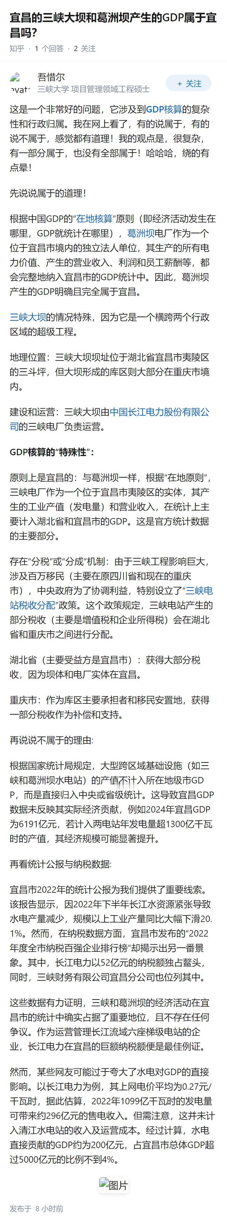 宜昌的三峡大坝和葛洲坝产生的GDP属于宜昌吗?