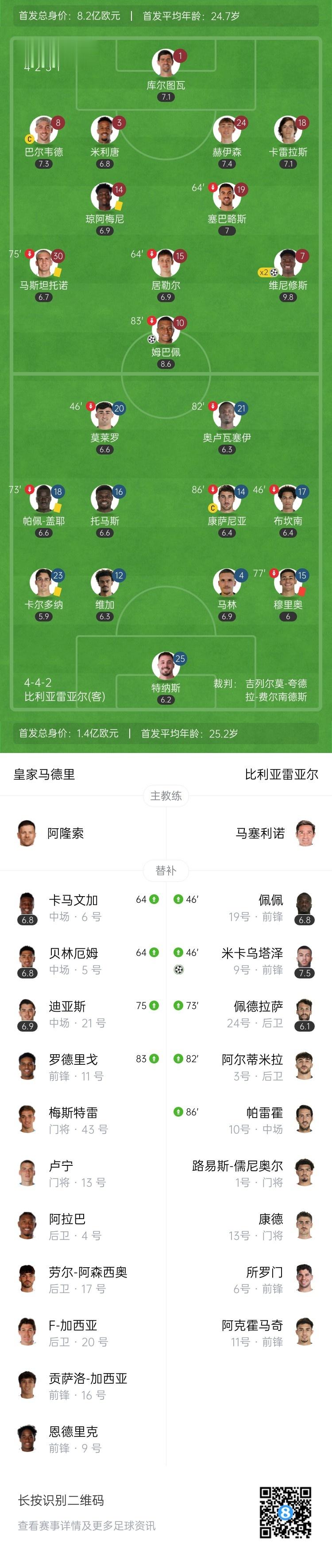 直播吧10月5日讯直播吧10月5日讯西甲第8轮,皇家马德里坐镇主场伯纳乌迎战比利亚雷亚尔。上半场,马斯坦托诺失良机,库尔图瓦拒单刀。易边再战,维尼修斯个人秀破门+造点+点射,米卡乌塔泽远射世界波,穆里奥两黄被罚下,姆巴佩破门后伤退。最终皇马3-1黄潜。积分榜方面,皇马21分先赛登顶,黄潜16分第三。