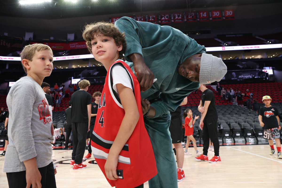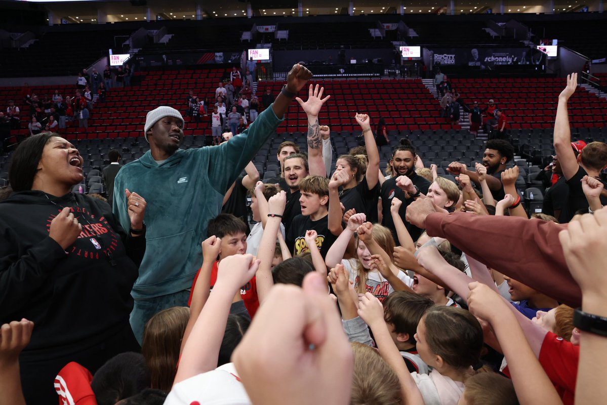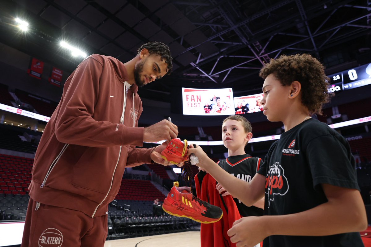 开拓者官方账号发推特报道,与英雄相遇杜普-里斯和拉扬-鲁珀特现身球队的波特兰青少年诊所活动,与孩子们进行问答互动并举行签名会!本活动由@DriveToyota赞助