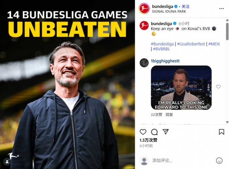 11胜3平!德甲官方晒科瓦奇海报:率领多特跨赛季14轮德甲不败