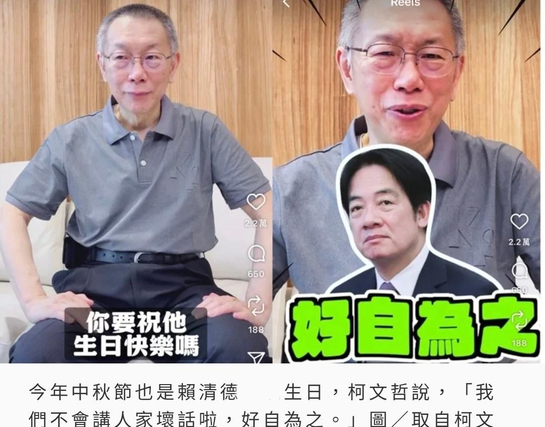 对于即将过生日的赖清德,柯文哲不讲坏话,送上了四个字。 柯文哲交保后,频繁通过短