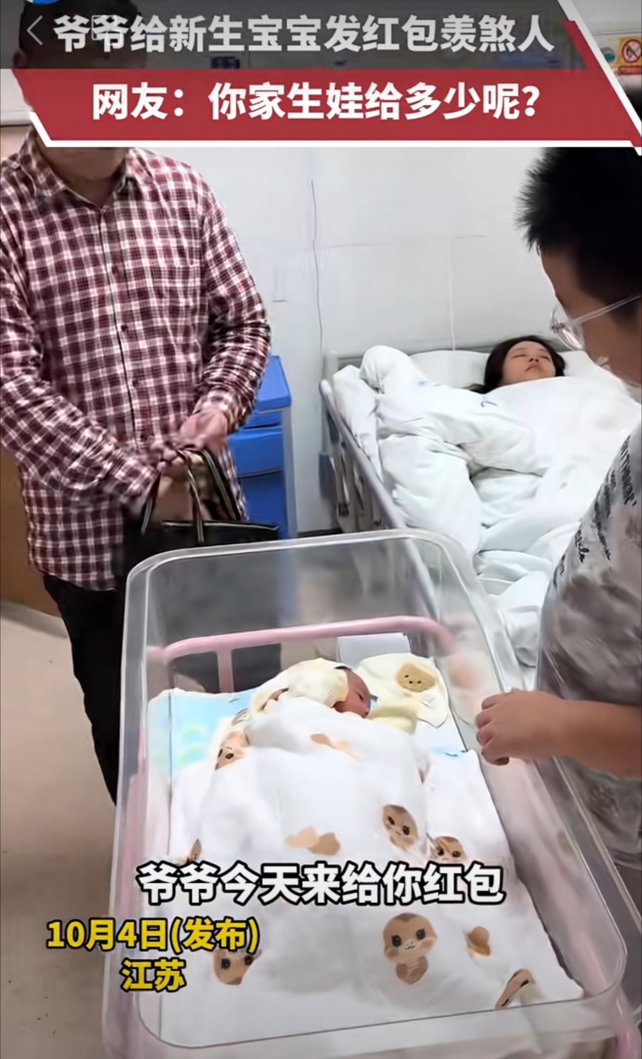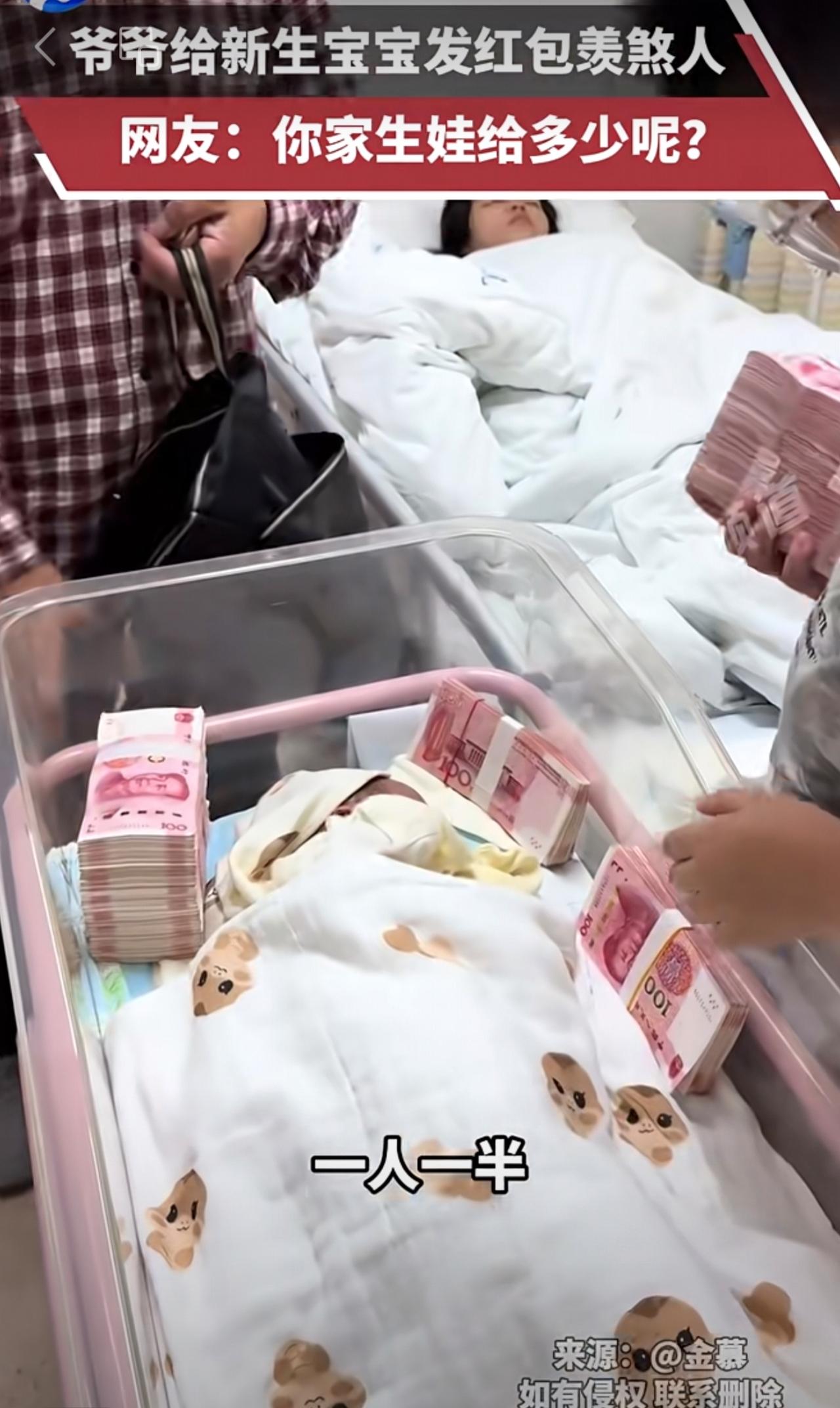 爷爷给新生宝宝发红包羡煞人,网友:你家生娃给多少呢?