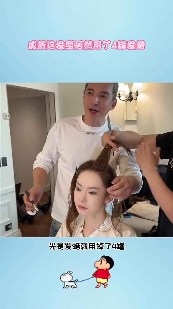 戚薇这发型居然用了4罐发蜡。 戚薇时装周造型原来这么严谨,试了多套衣服后才选定这紧身裙。发型看似简单实则不简单,光是发蜡就用掉了4罐,每罐210克的量要涂在头上。难怪这个光明顶造型这么一丝不苟,真的太飒了。戚薇真是宅男又宅女。