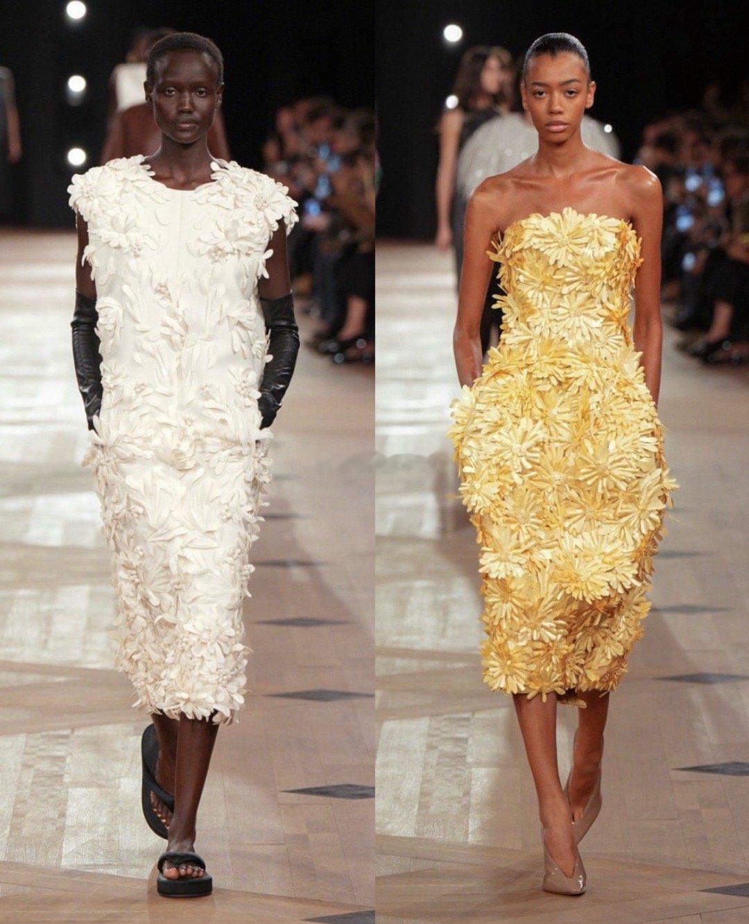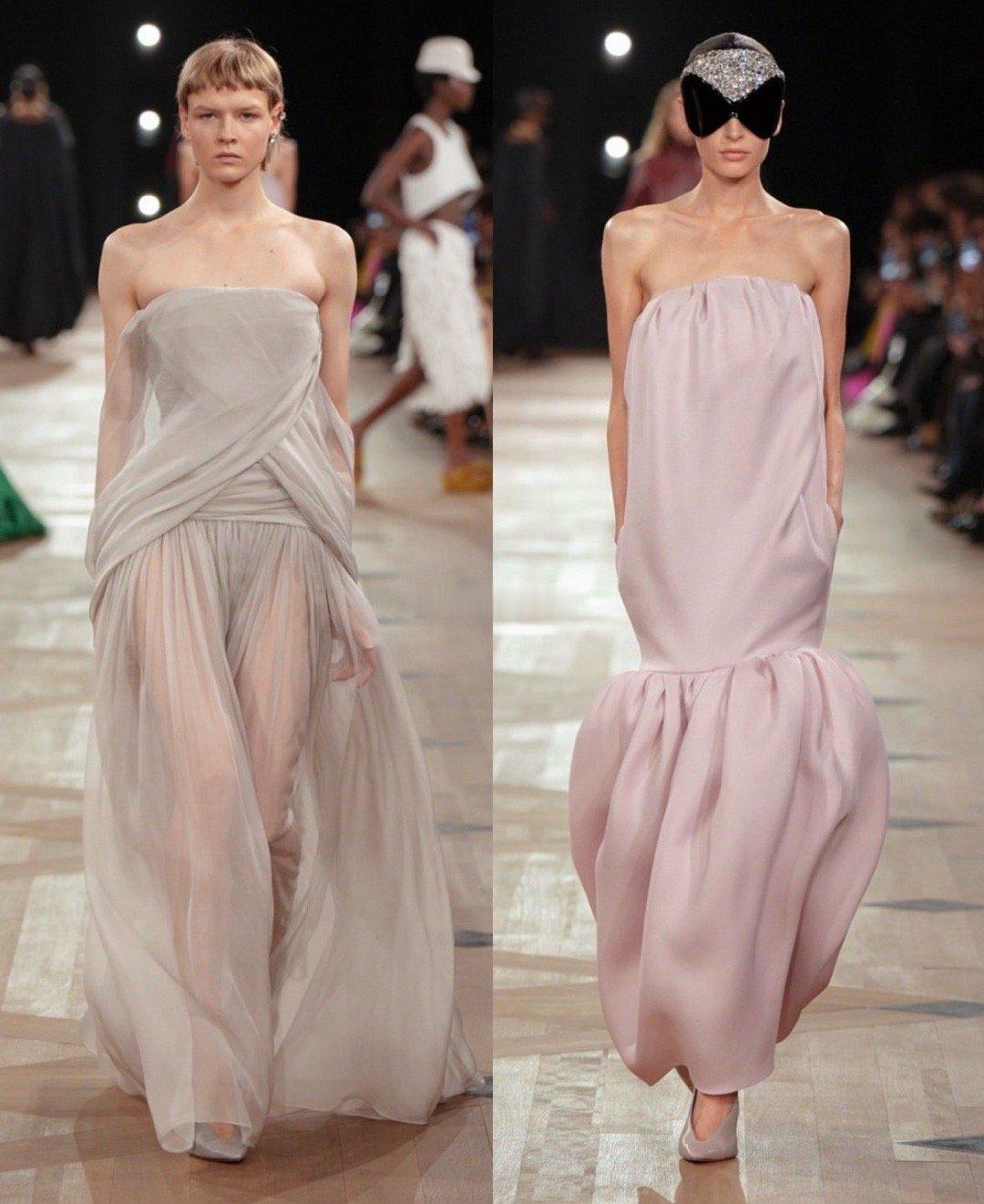 这场首秀虽然在极力的尊重传统,但Piccioli设计理念的核心仍然隐约可见,羽毛裙、歌剧手套和完全纯色的配色方案,让人回想起他在Valentino时期特有的年轻和别致。