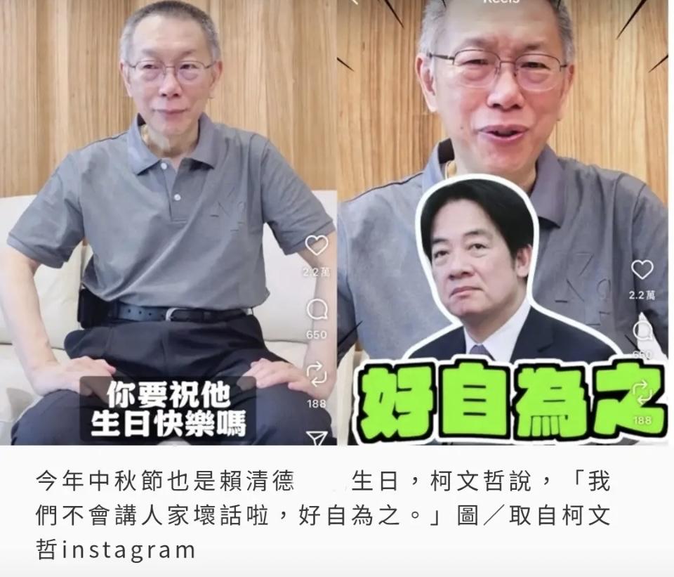 柯文哲这四个字太狠了!对着生日的赖清德说“好自为之”,比骂脏话还戳人。 交保出来后,他是真会玩舆论。先说去年中秋在里面看不到月亮,卖了波惨; 转头就给赖清德送“祝福”,这话听着客气,实则把自己放去了评判者的位置,暗戳戳点赖清德执政问题。 更妙的是跟馆长互动,开箱吃月饼破百万观看,把支持者和中间选民都抓牢了。他哪是在闲聊,分明是借着短视频布局,一边塑造成受害者,一边敲打对手,还顺便巩固基本盘。 这一手“软刀子”比硬刚高明多了。你觉得柯文哲这是单纯嘲讽,还是在为2028铺路?