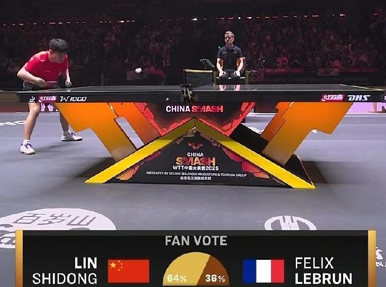 林诗栋和勒布伦的半决赛,已经开始了。 场上的支持率,林诗栋64%,勒布伦36%,感觉林诗栋在自己家门口比赛,支持率有点低,但现场为林诗栋加油声很高。 林诗栋开局不利,11-5先输掉第一局。 第二局开始,林诗栋才调动起来,战术也很明确,也开始了嚯嚯哈哈,11-7扳回一局。 第三局林诗栋11-6又下一局,场上比分2-1。 王皓很有耐心给林诗栋布置战术,但愿林诗栋能扛下。 林诗栋今天这场比赛必须坚定,如果能拿下勒布伦,你就真正意义上有突破。 加油林诗栋,一定要坚决打出自信。 图片来自网络侵权可删。
