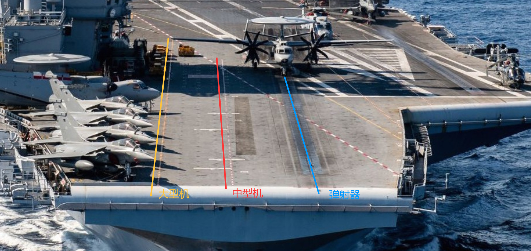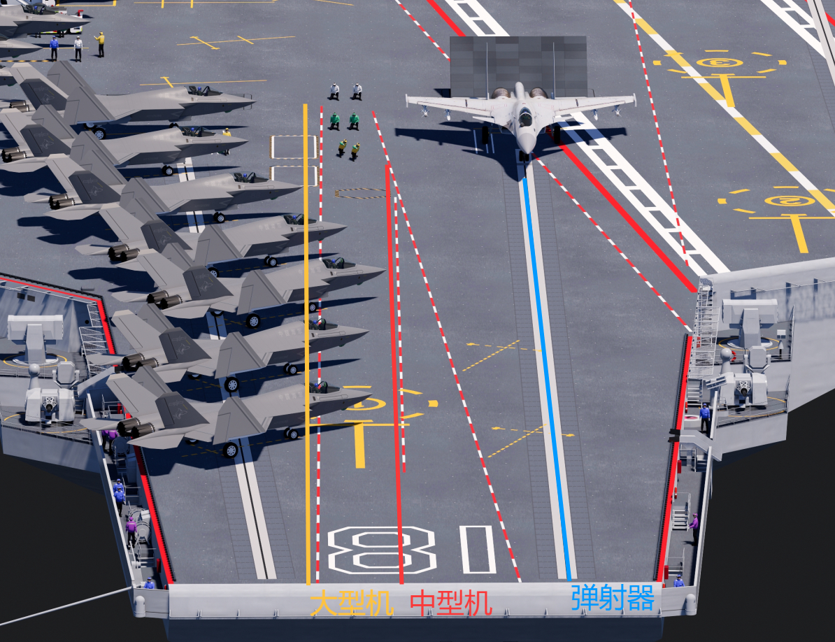 在舰首甲板有保障机位的时候,