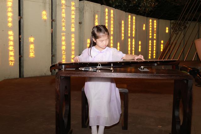 值得一提的是,当晚的古琴演奏者不仅有马亚琼这样的退休古琴爱好者,还有正在上学的学生。今年7岁的王戚涵学习古琴已近2年,现场,她和另一位小朋友共同带来了古琴合奏《酒狂》,用跌宕起伏的音调展现了狂放不羁的魏晋风骨。