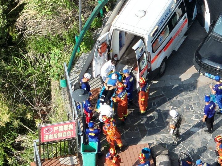 10月1日下午1点左右,在浙江省东阳市湖溪镇黄藤岩山上,一名女子在攀岩时不慎坠落山底。接到报警后,消防、医护以及社会救援力量迅速响应,合力展开救援。