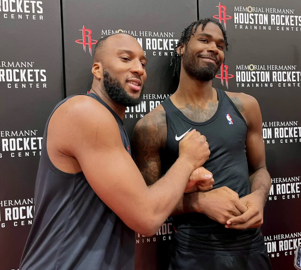 火箭球员约什-奥科吉在队友塔里-伊森接受媒体采访时突然入镜。 “伊森是新赛季的最