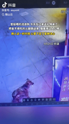 “万物皆有灵!”新疆一流浪狗跑到曾投喂过它的男子面前,本以为它是来索要吃的,没想到,小狗竟然把不舍得吃的火腿肠放在地上,后退两步默默的看着男子,原来它是想要回报男子,而男子接下来的举动,让人意外,网友:高低吃两口吧,别寒了小狗的心! 据后浪视频10月1日报道,那天店里人来人往,生意特别忙,男子一直在里面招呼客人,根本没空出来。 但这只流浪狗就那么安静地守在门外,不吵也不闹,有人从它身边经过,它连眼皮都懒得抬一下,只是专注地盯着店门,仿佛在执行一项神圣的任务。 时间一点点过去,它嘴里的那根火腿肠,对它来说就像是无价之宝,可它硬是忍住了饥饿,固执地等待着。 终于,那个熟悉的身影推门而出,就在男子出现的那一瞬间,原本安静的小狗立刻活了过来,尾巴摇得像个小风扇,飞快地跑到男子脚边。 它小心翼翼地把那根一直叼着的火腿肠放在地上,然后往后退了两步,蹲坐下来,抬起头,用一双清澈又充满期待的眼睛望着男子。 那眼神里没有乞求,没有索取,只有一种纯粹的、想要分享的喜悦,男子当时就愣住了,他经常会投喂附近的流浪动物,但这还是头一次遇到“提着礼物”上门报恩的。 他看着地上那根完好无损的火腿肠,再看看小狗瘦弱的身体,心里一下子就明白了,对于一只吃了上顿没下顿的流浪狗来说,这根火腿肠可能就是它翻遍了好几个垃圾桶,走了好几条街才找到的“满汉全席”。 它自己都舍不得吃,却第一时间想着要拿来送给自己,一股暖流瞬间涌上男子的心头,他鼻子一酸,差点掉下眼泪。 他知道,这根火腿肠的分量太重了,它代表的是一颗懂得感恩的心,拒绝,会寒了小狗的心,可真吃了,又怎么忍心让这个小家伙饿肚子? 很多网友看到这里都急了,纷纷出主意:“高低得吃两口啊,别辜负了狗子的一片心意!” “哪怕假装咬一下,再给它吃也行啊!” 大家都生怕男子的举动会伤害到这份纯真的情感。 男子显然也想到了这一点,他慢慢蹲下身,没有丝毫嫌弃地捡起了地上的火腿肠,他先是温柔地摸了摸小狗的头,像是在无声地告诉它:“你的心意,我收到了。” 小狗舒服地眯起了眼睛,喉咙里发出满足的呜呜声,接着,男子做出了一个让所有人都感到无比温暖的举动。 他没有自己吃,也没有直接把火腿肠还给小狗,而是当着小狗的面,把火腿肠掰成一小块一小块,然后伸出手,一块一块地亲自喂到小狗的嘴里。 小狗起初还有些犹豫,但看到男子真诚的眼神,便张开嘴巴,大口大口地吃了起来,尾巴摇得更欢了。 这个处理方式,简直是教科书级别的,男子既没有辜负小狗的深情厚谊,用行动接纳了这份“礼物”,又用最体贴的方式,确保了这份“礼物”最终能填饱它的肚子。 他守护的不仅仅是一只流浪狗的温饱,更是一颗纯粹、善良、懂得感恩的心,这一幕,让无数人动容。 有人评论说:“这哪里是流浪狗,这分明是一位懂得‘滴水之恩,当涌泉相报’的绅士。” 是啊,动物的世界很简单,没有那么多弯弯绕绕,你对它好,它就记在心里,然后用它认为最珍贵的东西来回报你。 这根火腿肠,在人类世界或许微不足道,但在那只小狗的世界里,那就是它的全部家当,是它能拿出的最高规格的谢礼。 其实,我们身边从不缺少这样的温暖,只是在忙碌的生活中,我们常常会忽略掉这些微小而真挚的情感。 这只小狗用它的行动提醒了我们,善良是会传染的,爱是可以相互传递的,一份不求回报的付出,往往能收获最真诚的回应。 这个世界有时候很复杂,但总有那么一些瞬间,让我们相信最质朴的情感才是最打动人心的力量。 信源:后浪视频2025-10-1——新疆。女子被曾经投喂过得流浪小狗妈妈反送火腿肠报恩。
